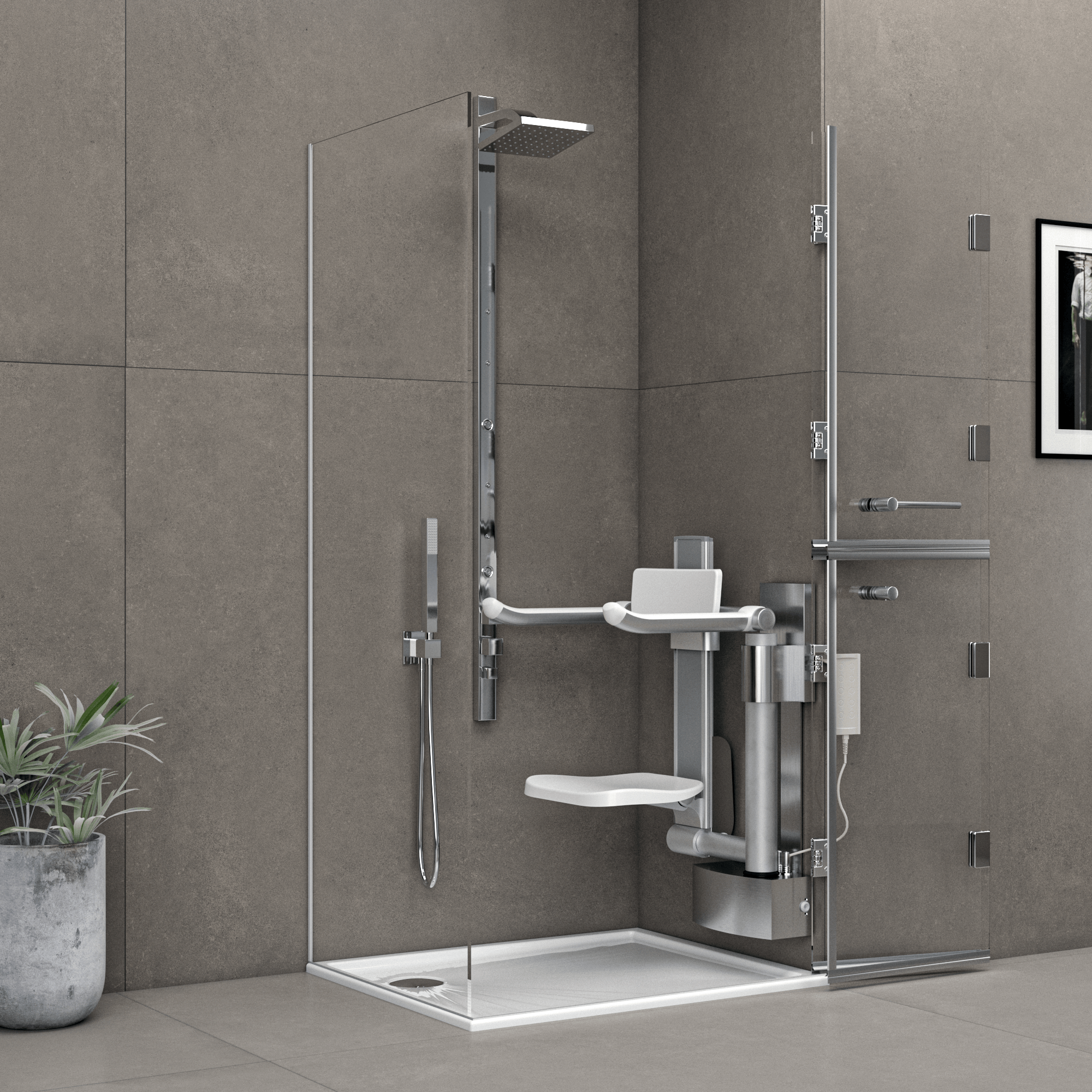 Aidy es una práctica ayuda que permite a las personas con movilidad reducida acceder a la cabina de ducha con total comodidad y seguridad. Gracias a sus reducidas dimensiones, Aidy también se puede instalar en estancias de mínimas dimensiones.