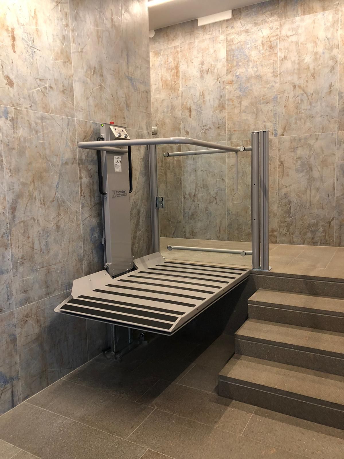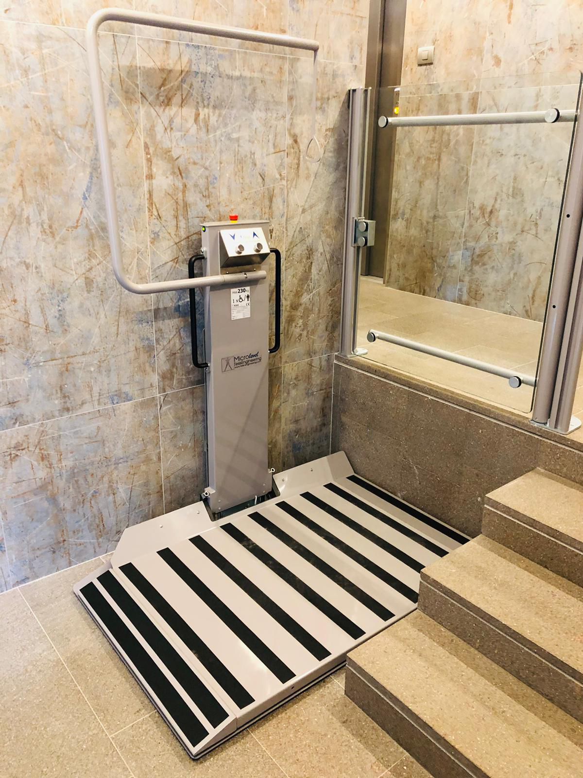 MicroLevel permite salvar pequeños desniveles y además proporciona una solución práctica y cómoda al problema de accesibilidad frente a cajeros automáticos o máquinas expendedoras.
